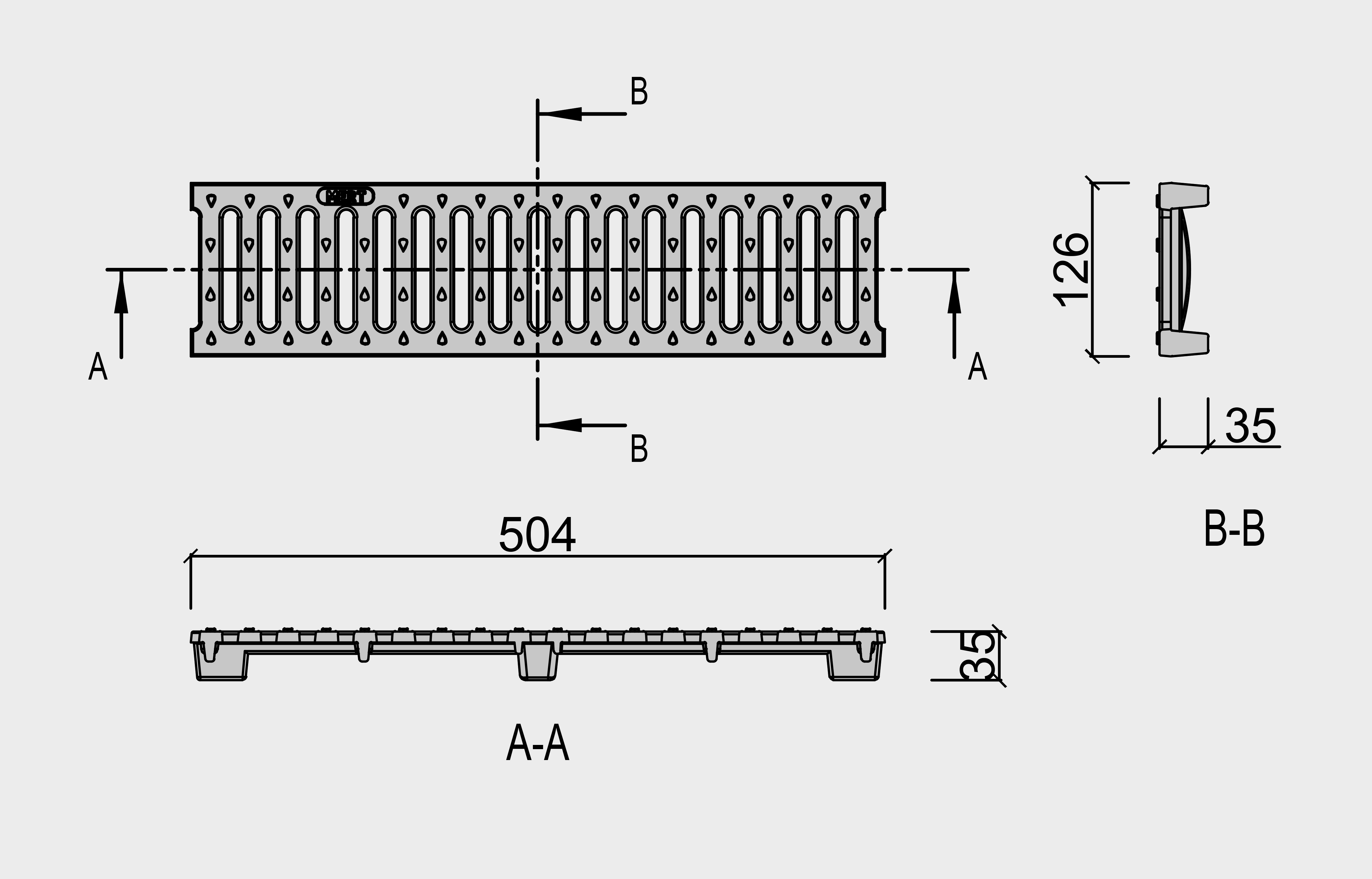 Sfero Döküm Lineer Kanal Izgarası (125mm x 500mm x 35mm) B125