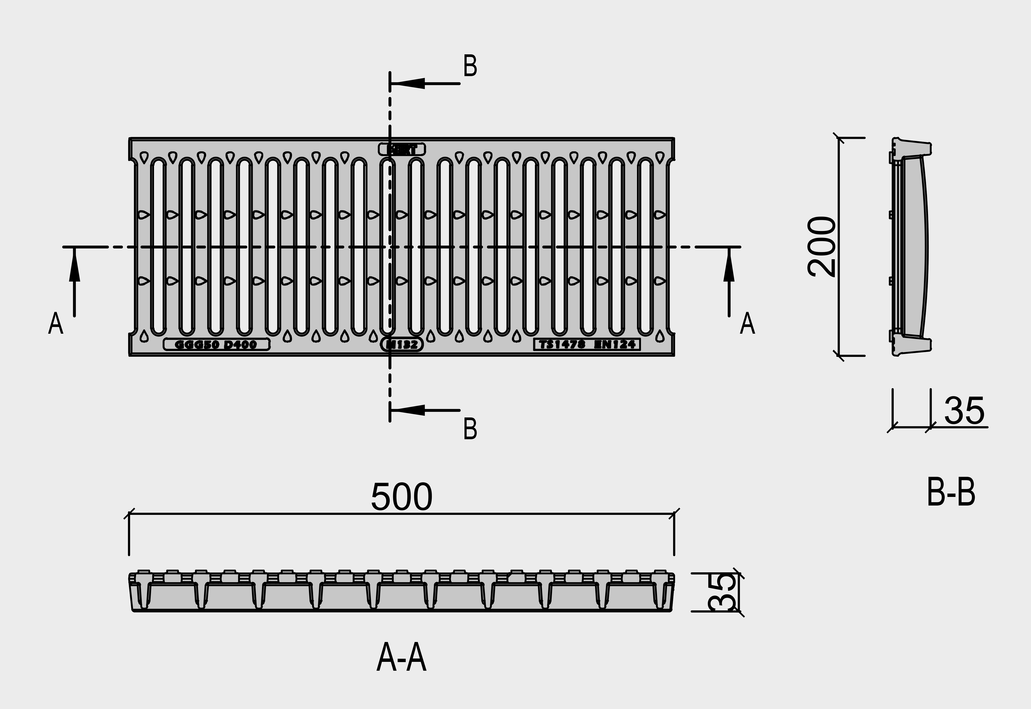 Sfero Döküm Lineer Kanal Izgarası (200mm x 500mm x 35mm) D400