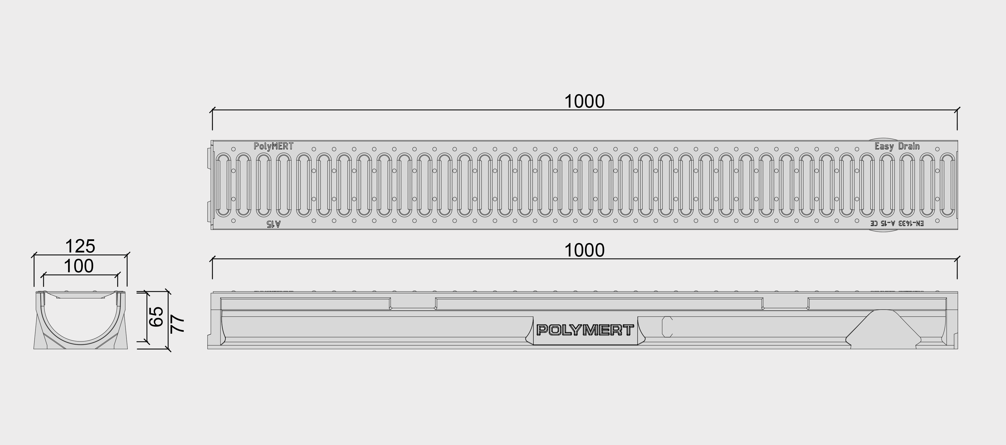 Polimer Beton Lineer Drenaj Kanalı (125 mm x 1000 mm x 77 mm) B125